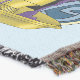 A quality printed throw has its advantages. This is a much finer weave throw than its loopier cousins, and though lighter, it is worth the investment for custom room accessorizing. The back is much prettier than the typical brown, and the fringe on the long sides very vivid, the selvage nicely done. Before photographing, I washed the throw in cold water, delicate, with a thicker woven throw the same size. On tumble dry low, this throw was dry in half the time as the other. This is a very practical quality if you use throws for furniture covers or to wrap up in frequently. The sleekness of the fabric makes it a great layer for accenting or protecting without the feeling of sitting on too much stuff. Perfect for napping or when you feel a light chill coming on. The color printing is beautiful and on this fabric, matched the design and color of my Photoshop image. This is an advantage for blending room fabrics and colors. The fringe on the short sides prints the colors from the design image and therefore varies from the side fringe. I streaked a white fractal line through the plaid pattern to give the illusion of weaving. This printed as crisp as an illusory thread, and put some white in the short side fringe, showing another advantage of print vs loomed- for artistic purposes, line lines, detail, and color integrity can be planned and preserved. My loomed throws have color limitations and more of a needlepoint texture. Print throws reproduce an exact image. The throw felt a little stiff straight out of the package, but this went away in the first delicate wash. Of course I searched the wash water for ink or bleeding and there was none.