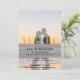 We do, announce our wedding date and request to reserve the date for a sunset wedding. A couple's sunset photo is arranged behind a half transparent exclamation of, We Do. The back of the flat invitation card shows a font pattern of, He asked and she said yes. Choose the fill color to match the shade of your sunset photo. Please do contact us for customization inquiries.