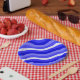 Wobbly Pop Stripes Bright Blue Diagonal Pattern Paper Plates