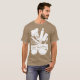 My 11 yo wore adult XL (5’7” 165#). The 8yo is small framed. She wore adult small and tied it in the back. Grandma wore adult large with long sleeve shirt underneath. Tall girl adult medium. Dark haired male adult large. Good quality dark Heather gray, Gildan brand shirt. -it was next up from basic choice and cost about $20 per shirt. Not too thick or thin. Washed and dried well, no major shrinkage. Not see-through. Can wear a bra under it fine. Screen print is just as shown and well done, front and back.