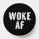 I'm Woke AF political PopSocket phone grip gift for a person who stays current in political affairs and goes to marches to protest and fight for equal rights, healthcare, and sensible gun laws. The white text on black background makes a bold statement.