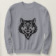 Mascot style snarling grey wolf face, on t-shirts, sweats, novelty gift swag.