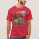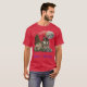 My 11 yo wore adult XL (5’7” 165#). The 8yo is small framed. She wore adult small and tied it in the back. Grandma wore adult large with long sleeve shirt underneath. Tall girl adult medium. Dark haired male adult large. Good quality dark Heather gray, Gildan brand shirt. -it was next up from basic choice and cost about $20 per shirt. Not too thick or thin. Washed and dried well, no major shrinkage. Not see-through. Can wear a bra under it fine. Screen print is just as shown and well done, front and back.