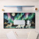 Bring the beauty of the wild into your workspace with this breathtaking wolf aurora borealis desk mat.