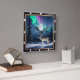 This stunning wall clock features a majestic wolf standing in a snowy landscape under a breathtaking display of the Aurora Borealis. The vibrant Northern Lights illuminate the serene winter scene, creating a captivating piece of wildlife art. Perfect for nature lovers, this timepiece brings the beauty of the wilderness and celestial wonder into your home.