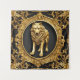 A striking image featuring a black wolf set against a luxurious gold ornamental frame, evoking a sense of mystique and power. The contrast between the sleek, gold fur of the wolf and the intricate, elegant details of the frame creates a visually captivating composition.