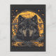 Wolf Design Postcard with Full Moon Stars