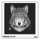 This design features a wolf wearing a vintage motorcyle helmet.
