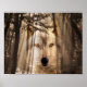 Timber wolf face photo layered onto a woodland photo with rays of sunshine or sunlight to create a somewhat mystic wolf lovers poster