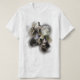 The material shirt very professional strong I can tell it's going to hold up for a long time. Thedesign and printing was awesome no faded colors the writing was perfect this is probably my third or more shirts and many more sorry can't get photos now at my sister's house I have the design if I can I will be putting in photos of shirt thanks Zazzle