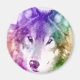 Colorful digital art rendering of wolf face.
