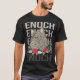 My 11 yo wore adult XL (5’7” 165#). The 8yo is small framed. She wore adult small and tied it in the back. Grandma wore adult large with long sleeve shirt underneath. Tall girl adult medium. Dark haired male adult large. Good quality dark Heather gray, Gildan brand shirt. -it was next up from basic choice and cost about $20 per shirt. Not too thick or thin. Washed and dried well, no major shrinkage. Not see-through. Can wear a bra under it fine. Screen print is just as shown and well done, front and back.