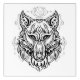 Wolf head front view with ethnic decorations and spiritual symbols of the moon and arrows. Predator front view portrait with curls and tribal ornaments.
