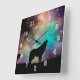 Wolf howling silhouette with Northern Lights and Milky Way clock