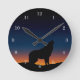 Silhouette of a howling wolf at sunset with stars wall clock