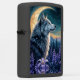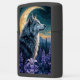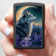 Wolf in Moonlight- purple flowers reflection Zippo Lighter
