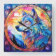 Wolf in Stained Glass Square Wall Clock