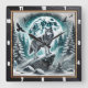 Wolf in Winter Forest Under Moonlit Sky Square Wall Clock