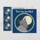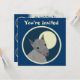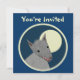 Custom two-sided invitation cards. Front has customizable "You're Invited". Back has invitation information--enter your event title, date, time, location, and a personal message. "Paper cutout" style furry wolf against a full moon, within a bordered circle. Fun animal design.