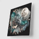 Wolf walking the landscape and Full moon in gray, teal and gold