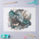 Wolf walking the landscape and Full moon in gray, teal and gold