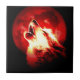 Wolf, Moon & Red Sky Ceramic Tile