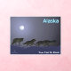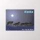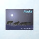 A cold, moonlit winter night; a wolfpack on the prowl. Text reading, "Alaska" appears in glowing blue and white. Add your own additional text.