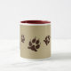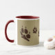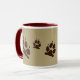 A mug with wolf paw prints going around it. Prints in dark brown on a beige colored background. Show your support of these beautiful and elusive night time canine singers.