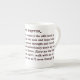 This mug is imprinted with a Bach Solos Suite for Cello. It was purchased as a thank you gift for a professional cellist friend who often performs this work. The cup is made of a high-grade ceramic and is fairly light. The walls are not too thick and it is a small to medium size. It's well finished, has a high-gloss glaze, and looks very elegant. The Bach Solo Suite score on the example I received was clear and had high contrast. Even though the staffs were small, the music was easy to read. The cellist who received this cup immediately knew what the music was as soon as she set eyes on it.