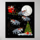 Wolf Santa Sleigh Flying Funny Magical Christmas P Poster