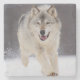 Stone coaster shown with a photo print of a beautiful wild wolf running in the snow. Choose from four great stone types.