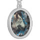 *~* Wolf Totem Blue Abstract Polyester Boho Round Silver Plated Necklace