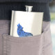 This design is the outline of a howling wolf with a blue to beige color gradient and the silhouette of a tree inside.