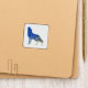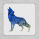 This design is the outline of a howling wolf with a blue to beige color gradient and the silhouette of a tree inside.