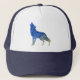 This design is the outline of a howling wolf with a blue to beige color gradient and the silhouette of a tree inside.