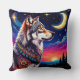 Wolf Under the Crescent Moon at Night Throw Pillow