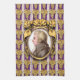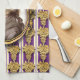 On this 100% cotton kitchen towel is a portrait of the classical music composer Wolfgang Amadeus Mozart. The portrait is a profile set in an ornate oval golden frame. The frame hangs on a purple wallpaper background with golden bunches of grapes in rows, and vertical white and lavender stripes. Apron available "Music makes the cooking even better!"