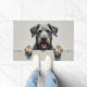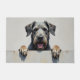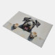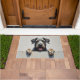 The soft stone gray background adds a timeless and elegant touch, perfect for welcoming entryways. Designed with extra space at the top and bottom, it allows easy personalization with names, welcome messages, or custom text—making it ideal for unique dog-themed doormats and thoughtful gifts.