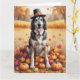 Wolfhound In Autumn Leaves Thanksgiving Art Card
