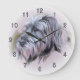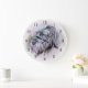 The dog portrait decorating this wall clock was originally created in soft pastel on a gray background. He is a large Irish Wolfhound with black and gray fur.