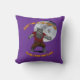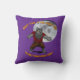 Night time is the right time to wolf down some candy. Fun Halloween throw pillow with a werewolf standing in front of the moon.