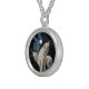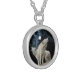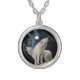 Beautiful silver necklace with two white wolves in the snow singing to the moon