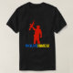 My 11 yo wore adult XL (5’7” 165#). The 8yo is small framed. She wore adult small and tied it in the back. Grandma wore adult large with long sleeve shirt underneath. Tall girl adult medium. Dark haired male adult large. Good quality dark Heather gray, Gildan brand shirt. -it was next up from basic choice and cost about $20 per shirt. Not too thick or thin. Washed and dried well, no major shrinkage. Not see-through. Can wear a bra under it fine. Screen print is just as shown and well done, front and back.