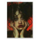 A lady with her face in her hands with a red background a grungy painting AI generated