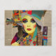 Woman Face Mixed Media Collage Postcard