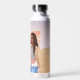The bottle looks even better in real life. The ice cubes I put in lasts all day! I have my bottle with me all the time. It's summer and having something cold to drink feels amazing. With this bottle I always have something super cold. I have only tried the hot drink once and it lasted a long time as well. The color blue is a navy blue and the white printed on it is vibrant. It printed perfectly. I love my personalized smile water bottle.