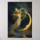 Woman Flying By A Crescent Moon Face Poster