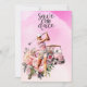 Woman golfer with pink golf cart on pink invitation