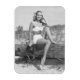 Woman wearing bikini sitting on log on beach, (B&W), (Portrait) | George Marks | AssetID: 57416977