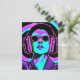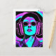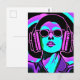 Pink, purple, teal and black abstract AI art. Woman wearing headphones listening to music. generativecontent